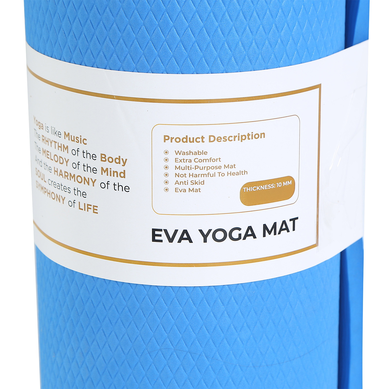 10 MM Eva Yoga Mat | Anti-Skid Yoga Mat for Men and Women | Comfortable and Firm Cushioning | Sweat Resistant and Washable | Blue