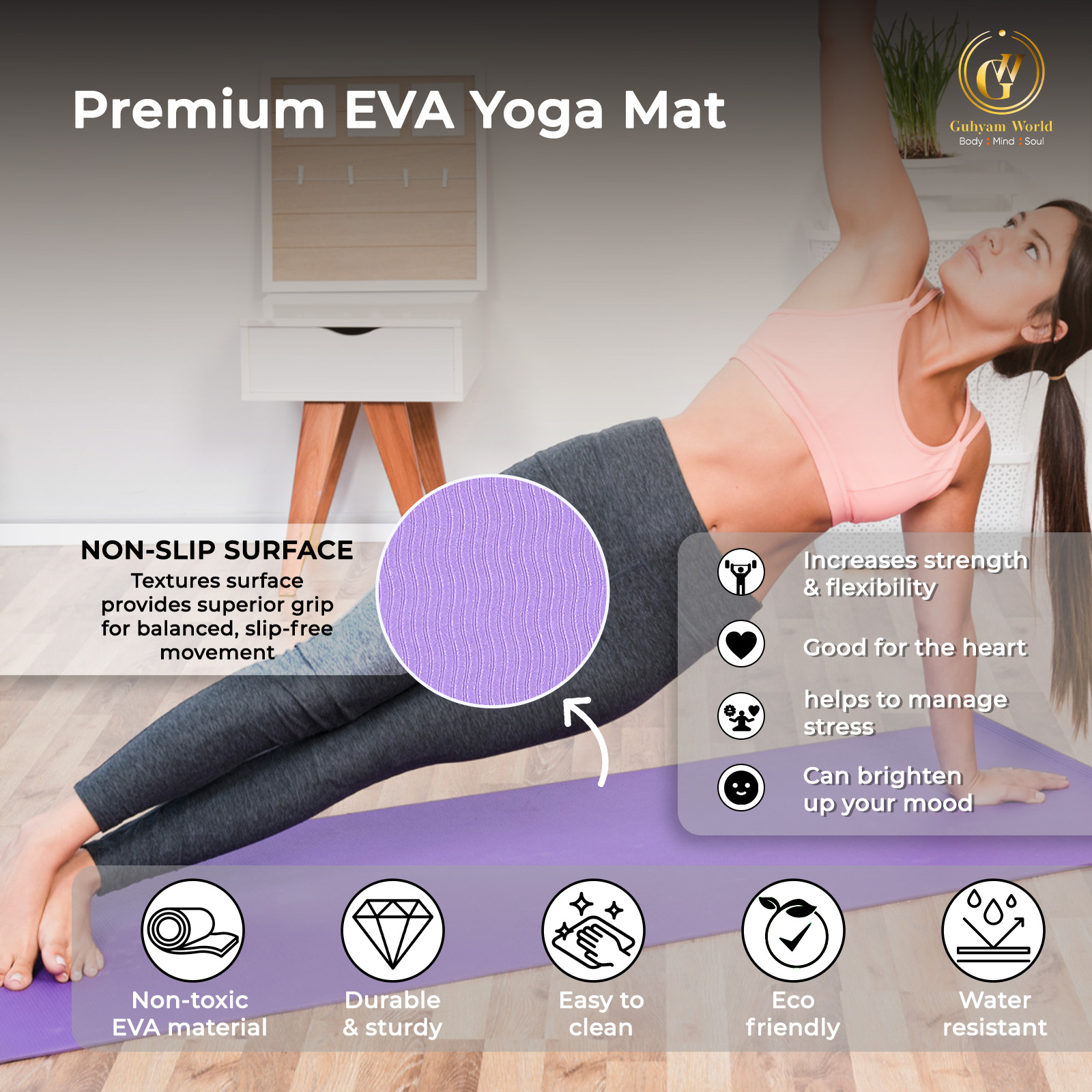 Achieve stability, comfort, and cleanliness in every pose with the Guhyam World EVA Yoga Mat – where performance meets peace.