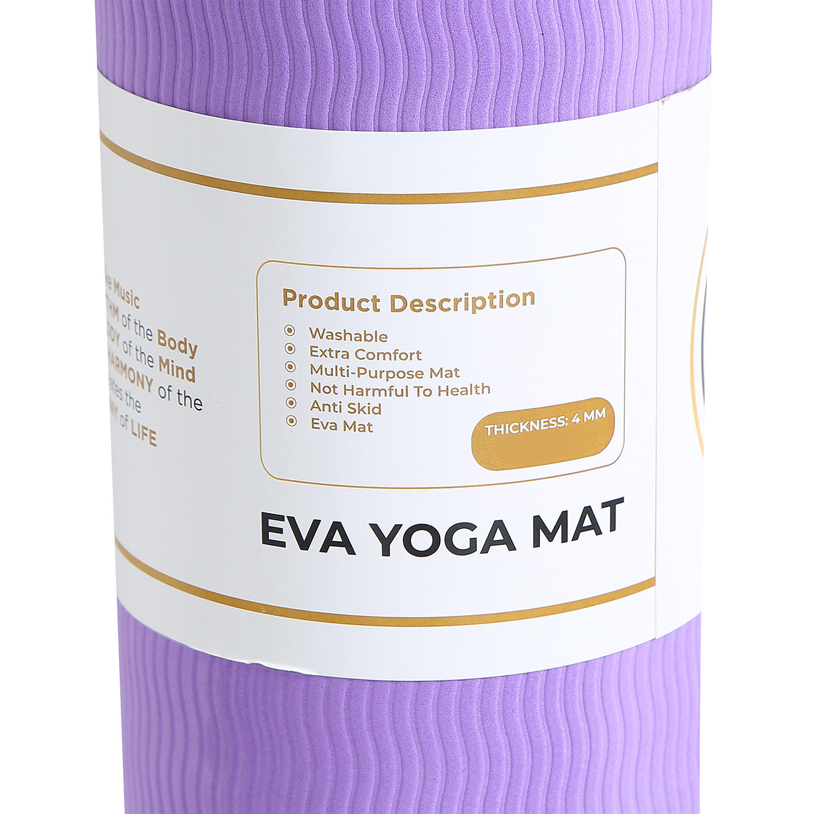 4 MM Eva Yoga Mat | Anti-Skid Yoga Mat for Men and Women | Comfortable and Firm Cushioning | Sweat Resistant and Washable | Purple