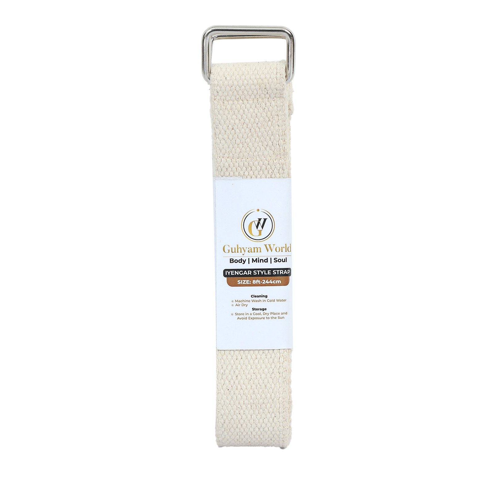 8 Feet Cotton Yoga Strap | Stretchable & Flexible, Cotton Material, Durable and Comfy Texture – Perfect for Your Yoga Session | Beige