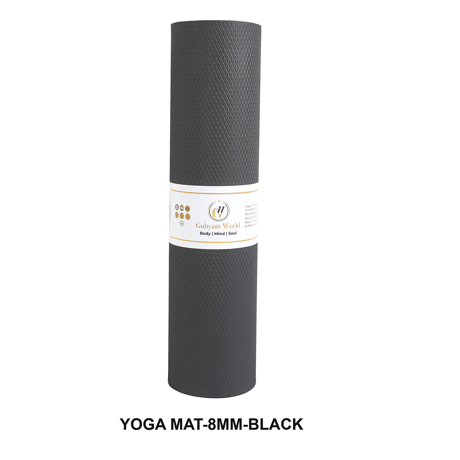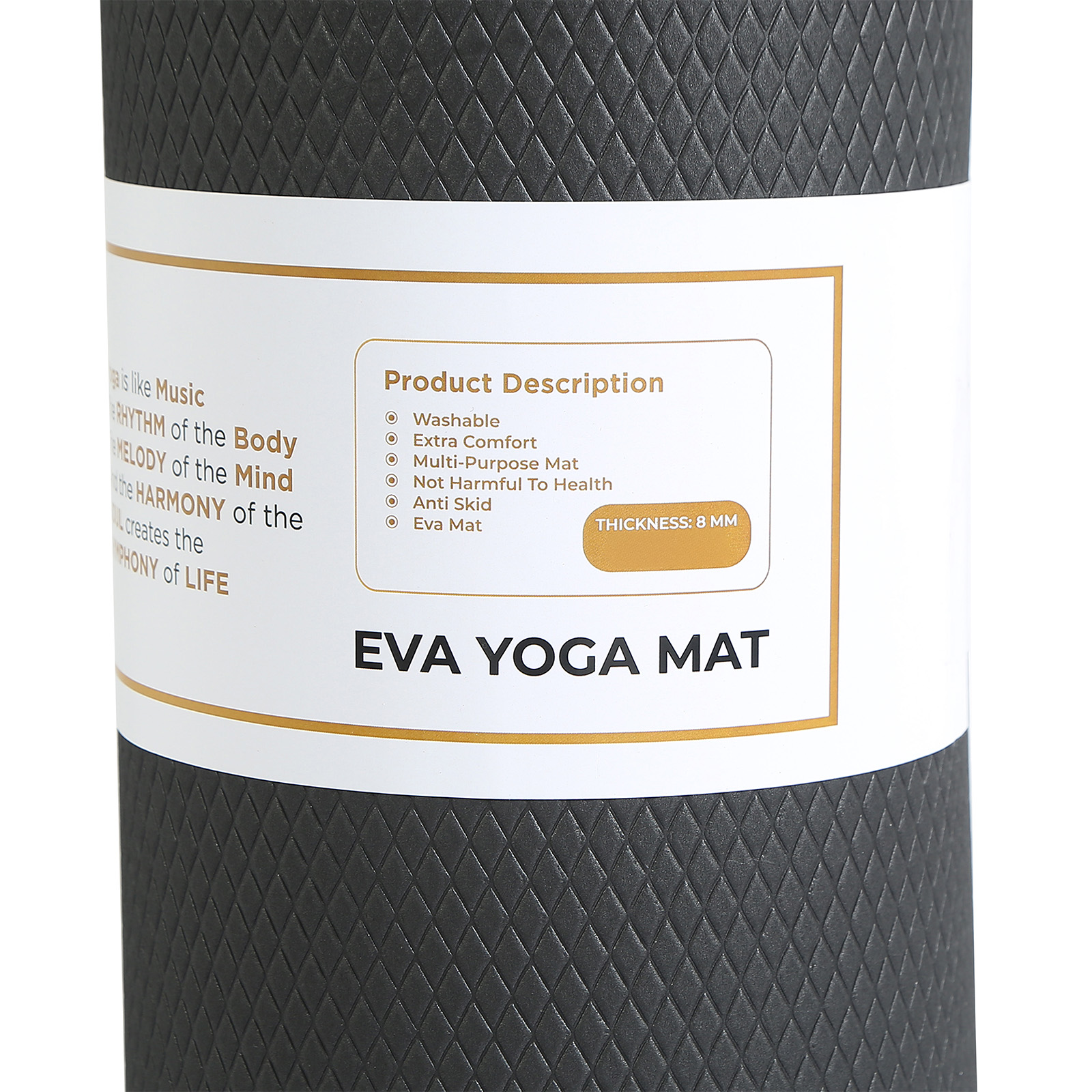 8 MM Eva Yoga Mat | Anti-Skid Yoga Mat for Men and Women | Comfortable and Firm Cushioning | Sweat Resistant and Washable | Black