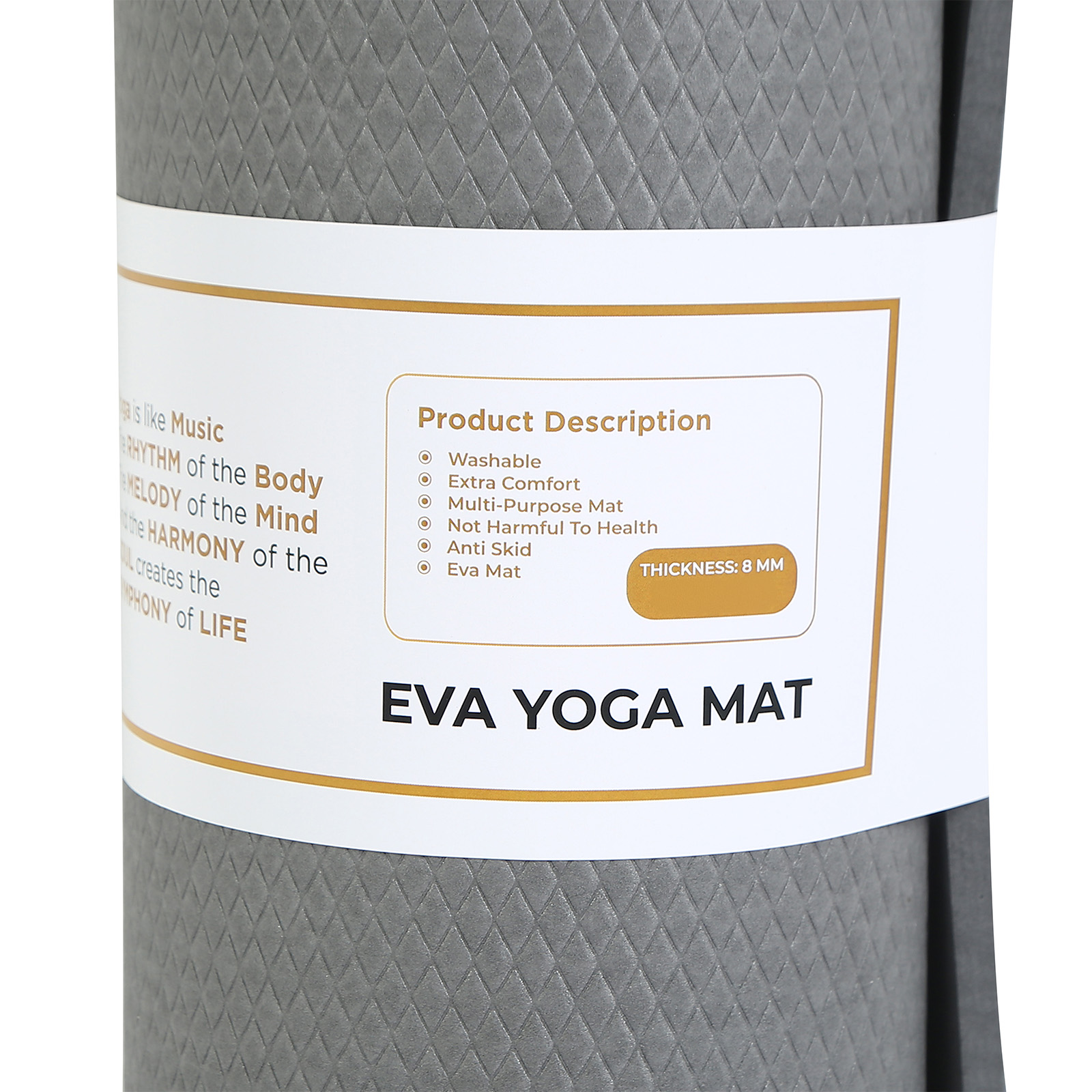 8 MM Eva Yoga Mat | Anti-Skid Yoga Mat for Men and Women | Comfortable and Firm Cushioning | Sweat Resistant and Washable | Grey