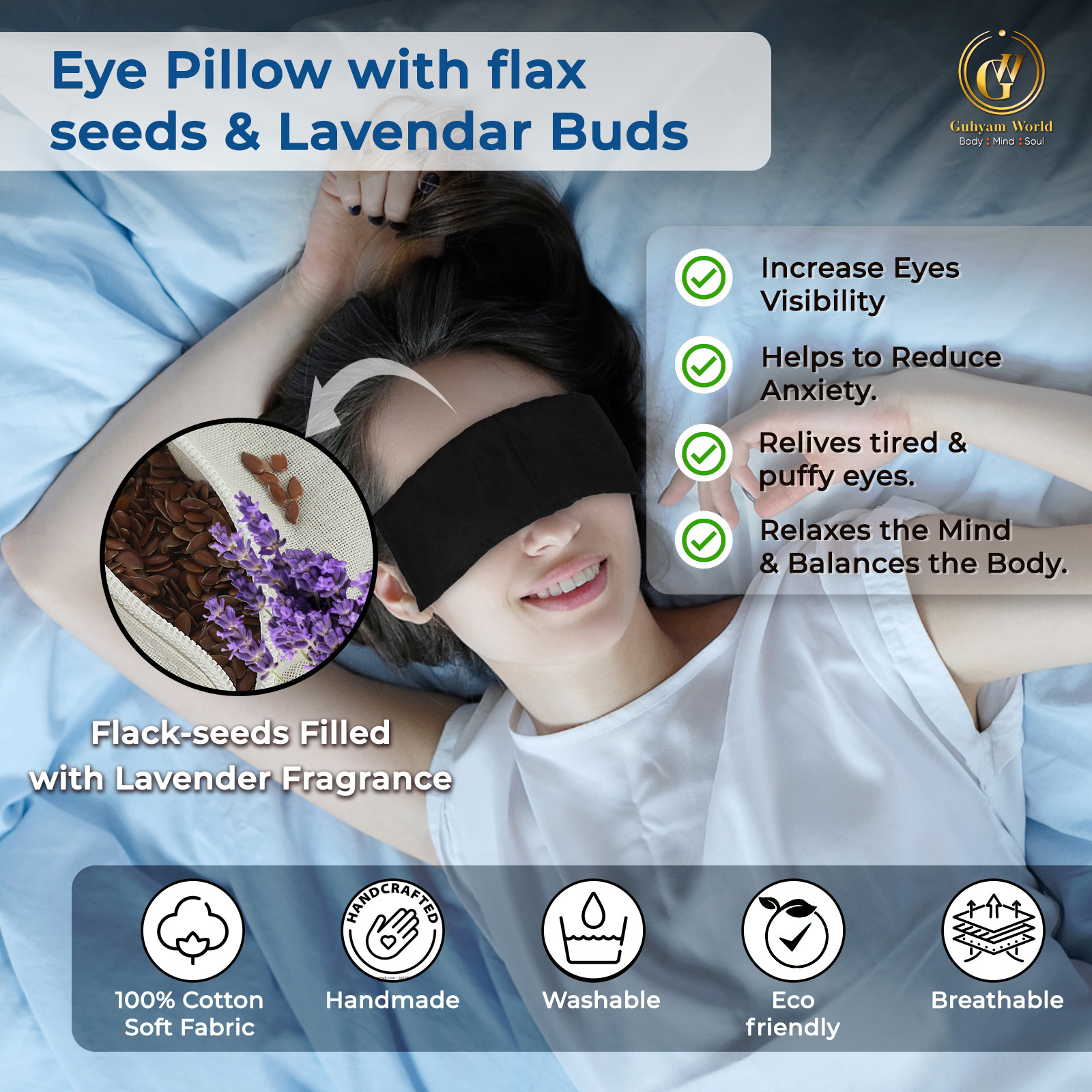 GUHYAM WORLD Eye Pillow – Relaxation & Comfort for Yoga, Spa & Meditation