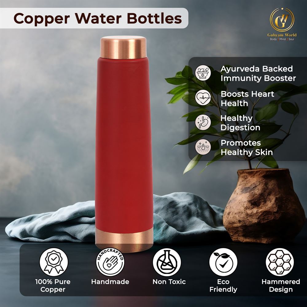 Copper Bottle (1000ml): 100% Pure Copper |BPA Free Water Bottle | Leak Proof | Office Bottle | Boosts Immunity| Supports Digestive & Liver Health | Ayurveda Inspired (Copy)