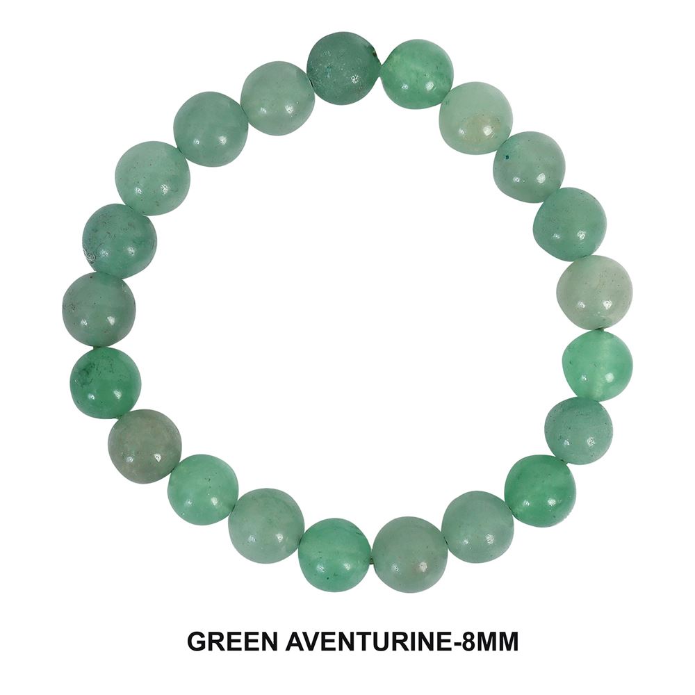 Green Aventurine Bracelet – Unisex Classic Strand Bracelet – Green – 8mm Round Cut Beads – Stretchable Elastic – Snap Clasp – Lab Tested & Certified